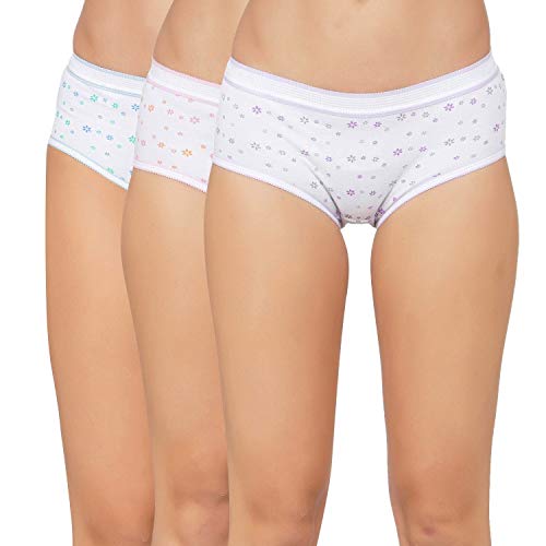 BLAZON Premium Beauty Women's White Printed Broad Elastic Cotton Panties Pack of 3