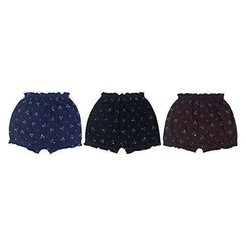 BLAZON Toddlers/Kids/Baby Girls Cotton Hosiery Bloomer Shorts Combo Pack of 3 Printed Dark Base Colour (Availabe Sizes: 45cm, 50cm, 55cm) - DAHLIA (Black, Brown, Navy Blue)