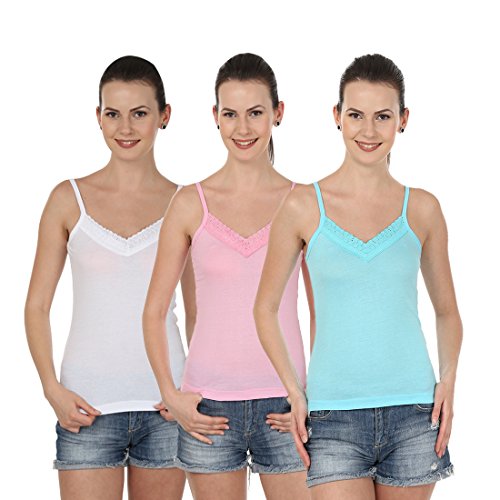Blazon Women's Camisole Set Of 3 ( White, Dark Pink, Turquoise )