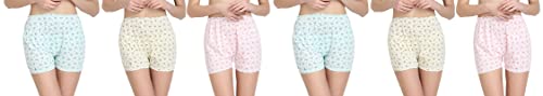 BLAZON Women's Cotton Hoisery Bloomers Floral Print Combo (Pack of 6) (Availabe Sizes: XS, S, M, L, XL, XXL, 3XL, 4XL, 5XL) - Baby Pink, Off White and Sea Green