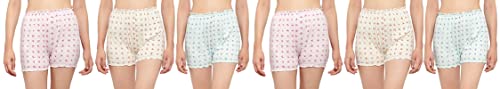 BLAZON Women's Cotton Hoisery Bloomers Floral Print Combo (Pack of 6) (Availabe Sizes: XS, S, M, L, XL, XXL, 3XL, 4XL, 5XL) - Off White, Baby Pink and Sea Green