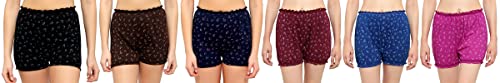 BLAZON Women's Cotton Hoisery Bloomers Floral Print Combo (Pack of 6) (Availabe Sizes: XS, S, M, L, XL, XXL, 3XL, 4XL, 5XL) - Sapphire Blue, Tamarind, Vivid Violet, Black, Brown and Navy Blue