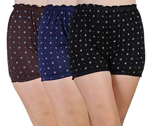 BLAZON Women's Cotton Hosiery Bloomer Combo Pack of 3 Assorted Colours (Availabe Sizes: XS, S, M, L, XL, XXL, 3XL, 4XL, 5XL) - Black, Brown, Navy Blue