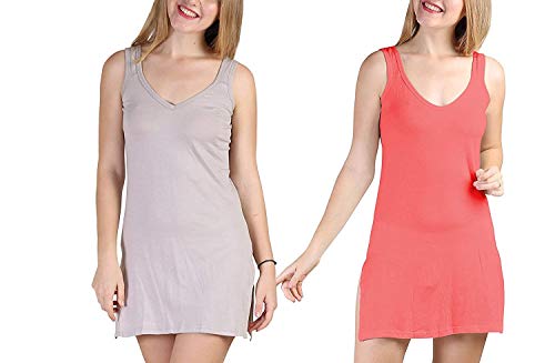 BLAZON Women's Cotton Hosiery Selfie Midi Slip Combo Pack of 2 (Available Sizes: XS, S, M, L, XL, 2XL, 3XL, 4XL, 5XL) - Almond Frost, Old Rose
