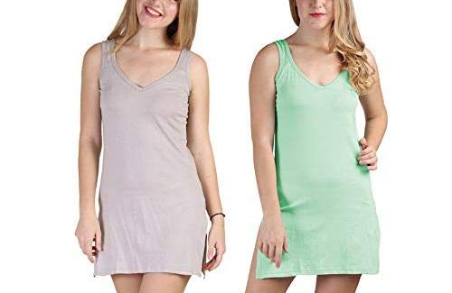 BLAZON Women's Cotton Hosiery Selfie Midi Slip Combo Pack of 2 (Available Sizes: XS, S, M, L, XL, 2XL, 3XL, 4XL, 5XL) - Almond Frost, Pista