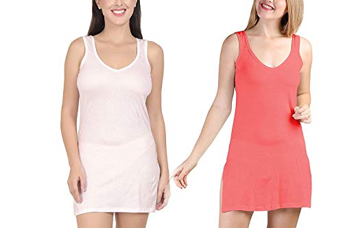 BLAZON Women's Cotton Hosiery Selfie Midi Slip Combo Pack of 2 (Available Sizes: XS, S, M, L, XL, 2XL, 3XL, 4XL, 5XL) - Baby Pink, Old Rose