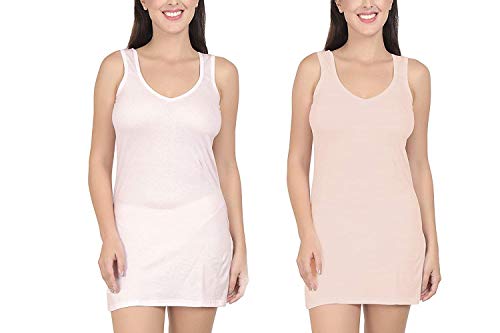 BLAZON Women's Cotton Hosiery Selfie Midi Slip Combo Pack of 2 (Available Sizes: XS, S, M, L, XL, 2XL, 3XL, 4XL, 5XL) - Baby Pink, Peach