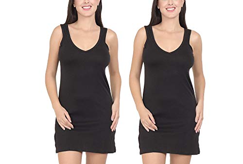 BLAZON Women's Cotton Hosiery Selfie Midi Slip Combo Pack of 2 (Available Sizes: XS, S, M, L, XL, 2XL, 3XL, 4XL, 5XL) - Black