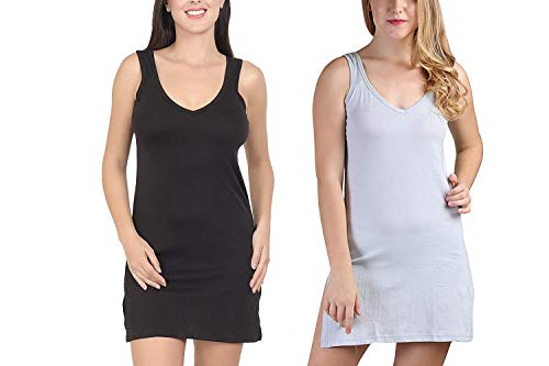 BLAZON Women's Cotton Hosiery Selfie Midi Slip Combo Pack of 2 (Available Sizes: XS, S, M, L, XL, 2XL, 3XL, 4XL, 5XL) - Black, Blueberry Frost