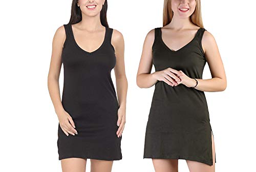 BLAZON Women's Cotton Hosiery Selfie Midi Slip Combo Pack of 2 (Available Sizes: XS, S, M, L, XL, 2XL, 3XL, 4XL, 5XL) - Black, Martini Olive