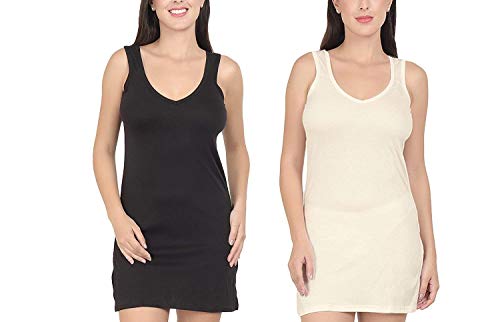 BLAZON Women's Cotton Hosiery Selfie Midi Slip Combo Pack of 2 (Available Sizes: XS, S, M, L, XL, 2XL, 3XL, 4XL, 5XL) - Black, Off White