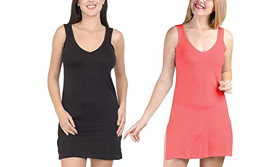 BLAZON Women's Cotton Hosiery Selfie Midi Slip Combo Pack of 2 (Available Sizes: XS, S, M, L, XL, 2XL, 3XL, 4XL, 5XL) - Black, Old Rose