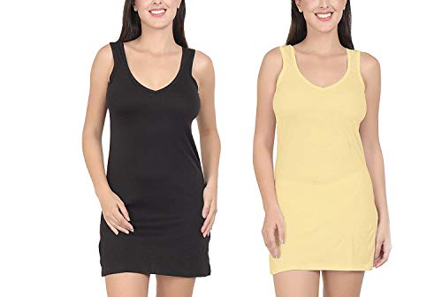 BLAZON Women's Cotton Hosiery Selfie Midi Slip Combo Pack of 2 (Available Sizes: XS, S, M, L, XL, 2XL, 3XL, 4XL, 5XL) - Black, Skin