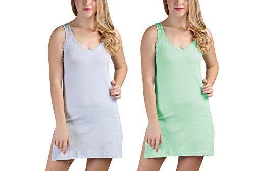 BLAZON Women's Cotton Hosiery Selfie Midi Slip Combo Pack of 2 (Available Sizes: XS, S, M, L, XL, 2XL, 3XL, 4XL, 5XL) - Blueberry Frost, Pista