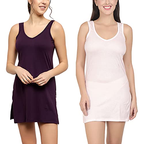 BLAZON Women's Cotton Hosiery Selfie Midi Slip Combo Pack of 2 (Available Sizes: XS, S, M, L, XL, 2XL, 3XL, 4XL, 5XL) - Blueviolet, Baby Pink