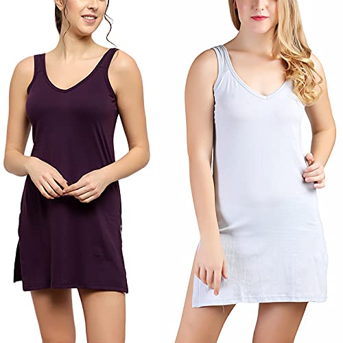 BLAZON Women's Cotton Hosiery Selfie Midi Slip Combo Pack of 2 (Available Sizes: XS, S, M, L, XL, 2XL, 3XL, 4XL, 5XL) - Blueviolet, Blueberry Frost