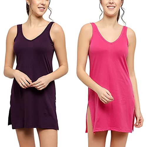 BLAZON Women's Cotton Hosiery Selfie Midi Slip Combo Pack of 2 (Available Sizes: XS, S, M, L, XL, 2XL, 3XL, 4XL, 5XL) - Blueviolet, Dark Pink