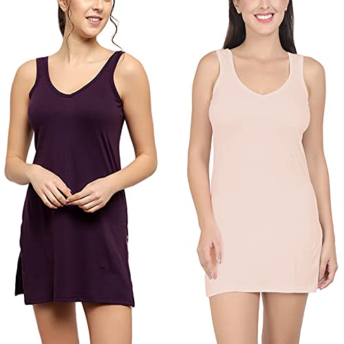 BLAZON Women's Cotton Hosiery Selfie Midi Slip Combo Pack of 2 (Available Sizes: XS, S, M, L, XL, 2XL, 3XL, 4XL, 5XL) - Blueviolet, Peach
