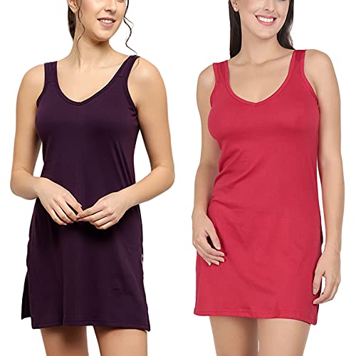 BLAZON Women's Cotton Hosiery Selfie Midi Slip Combo Pack of 2 (Available Sizes: XS, S, M, L, XL, 2XL, 3XL, 4XL, 5XL) - Blueviolet, Red