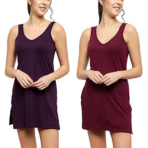 BLAZON Women's Cotton Hosiery Selfie Midi Slip Combo Pack of 2 (Available Sizes: XS, S, M, L, XL, 2XL, 3XL, 4XL, 5XL) - Blueviolet, Tamarind