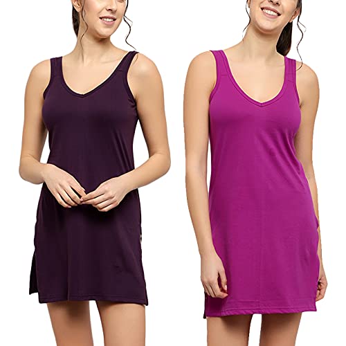 BLAZON Women's Cotton Hosiery Selfie Midi Slip Combo Pack of 2 (Available Sizes: XS, S, M, L, XL, 2XL, 3XL, 4XL, 5XL) - Blueviolet, Vivid Violet