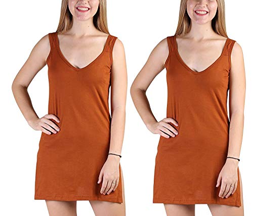 BLAZON Women's Cotton Hosiery Selfie Midi Slip Combo Pack of 2 (Available Sizes: XS, S, M, L, XL, 2XL, 3XL, 4XL, 5XL) - Brandy