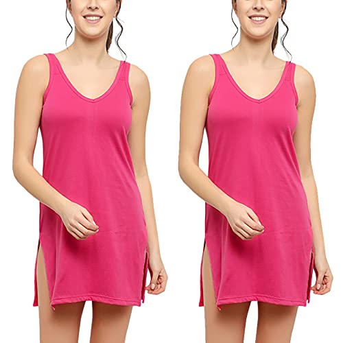 BLAZON Women's Cotton Hosiery Selfie Midi Slip Combo Pack of 2 (Available Sizes: XS, S, M, L, XL, 2XL, 3XL, 4XL, 5XL) - Dark Pink