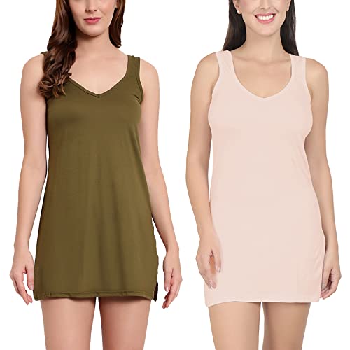 BLAZON Women's Cotton Hosiery Selfie Midi Slip Combo Pack of 2 (Available Sizes: XS, S, M, L, XL, 2XL, 3XL, 4XL, 5XL) - Field, Peach