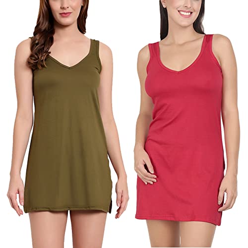 BLAZON Women's Cotton Hosiery Selfie Midi Slip Combo Pack of 2 (Available Sizes: XS, S, M, L, XL, 2XL, 3XL, 4XL, 5XL) - Field, Red