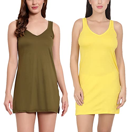 BLAZON Women's Cotton Hosiery Selfie Midi Slip Combo Pack of 2 (Available Sizes: XS, S, M, L, XL, 2XL, 3XL, 4XL, 5XL) - Field, Yellow