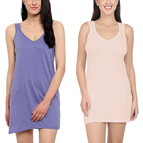 BLAZON Women's Cotton Hosiery Selfie Midi Slip Combo Pack of 2 (Available Sizes: XS, S, M, L, XL, 2XL, 3XL, 4XL, 5XL) - Lavender, Peach