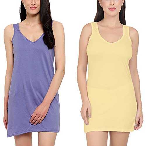 BLAZON Women's Cotton Hosiery Selfie Midi Slip Combo Pack of 2 (Available Sizes: XS, S, M, L, XL, 2XL, 3XL, 4XL, 5XL) - Lavender, Skin