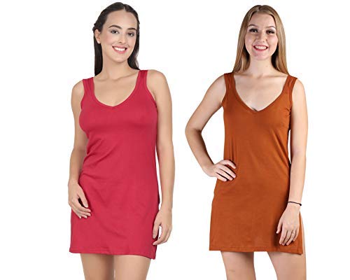 BLAZON Women's Cotton Hosiery Selfie Midi Slip Combo Pack of 2 (Available Sizes: XS, S, M, L, XL, 2XL, 3XL, 4XL, 5XL) - Red, Brandy