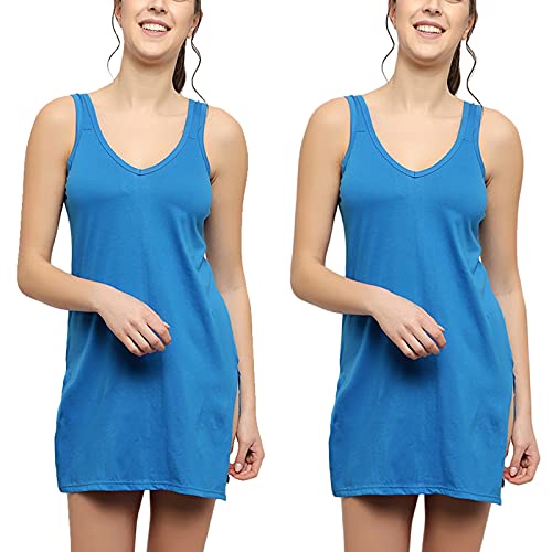 BLAZON Women's Cotton Hosiery Selfie Midi Slip Combo Pack of 2 (Available Sizes: XS, S, M, L, XL, 2XL, 3XL, 4XL, 5XL) - Royal Blue