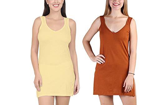 BLAZON Women's Cotton Hosiery Selfie Midi Slip Combo Pack of 2 (Available Sizes: XS, S, M, L, XL, 2XL, 3XL, 4XL, 5XL) - Skin, Brandy