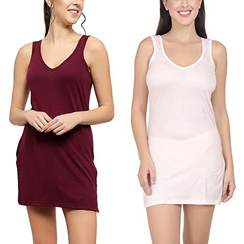 BLAZON Women's Cotton Hosiery Selfie Midi Slip Combo Pack of 2 (Available Sizes: XS, S, M, L, XL, 2XL, 3XL, 4XL, 5XL) - Tamarind, Baby Pink