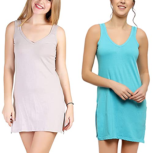 BLAZON Women's Cotton Hosiery Selfie Midi Slip Combo Pack of 2 (Available Sizes: XS, S, M, L, XL, 2XL, 3XL, 4XL, 5XL) - Turquoise, Almond Frost