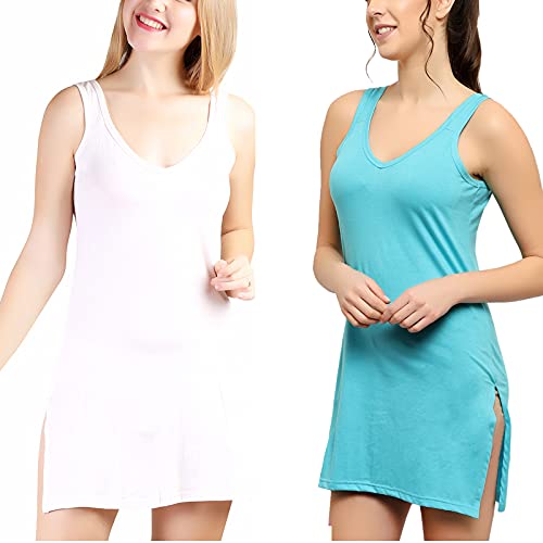 BLAZON Women's Cotton Hosiery Selfie Midi Slip Combo Pack of 2 (Available Sizes: XS, S, M, L, XL, 2XL, 3XL, 4XL, 5XL) - Turquoise, Strawberry Frost