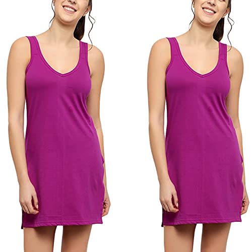 BLAZON Women's Cotton Hosiery Selfie Midi Slip Combo Pack of 2 (Available Sizes: XS, S, M, L, XL, 2XL, 3XL, 4XL, 5XL) - Vivid Violet