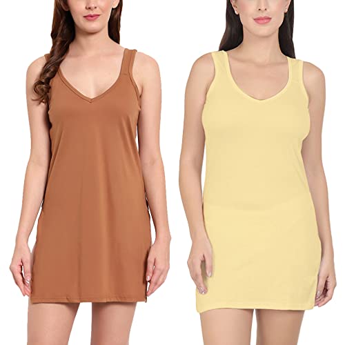 BLAZON Women's Cotton Hosiery Selfie Midi Slip Combo Pack of 2 (Available Sizes: XS, S, M, L, XL, 2XL, 3XL, 4XL, 5XL) - Wood, Skin