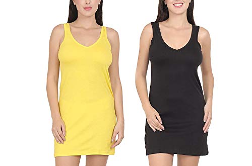 BLAZON Women's Cotton Hosiery Selfie Midi Slip Combo Pack of 2 (Available Sizes: XS, S, M, L, XL, 2XL, 3XL, 4XL, 5XL) - Yellow, Black