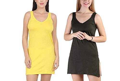 BLAZON Women's Cotton Hosiery Selfie Midi Slip Combo Pack of 2 (Available Sizes: XS, S, M, L, XL, 2XL, 3XL, 4XL, 5XL) - Yellow, Martini Olive