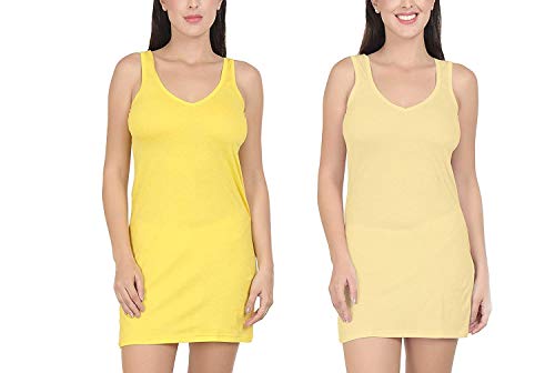 BLAZON Women's Cotton Hosiery Selfie Midi Slip Combo Pack of 2 (Available Sizes: XS, S, M, L, XL, 2XL, 3XL, 4XL, 5XL) - Yellow, Skin