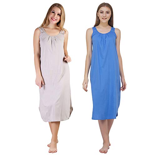 BLAZON Women's Cotton Hosiery Solid Maxi Nighty Slip (Pack of 2) Available Sizes: S, M, L, XL, 2XL, 3XL, 4XL, 5XL - Almond Frost, Azure Blue