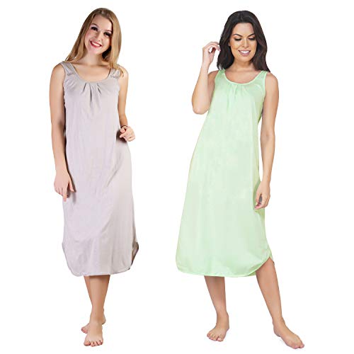 BLAZON Women's Cotton Hosiery Solid Maxi Nighty Slip (Pack of 2) Available Sizes: S, M, L, XL, 2XL, 3XL, 4XL, 5XL - Almond Frost, Sea Green