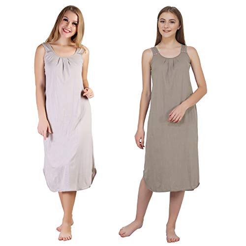BLAZON Women's Cotton Hosiery Solid Maxi Nighty Slip (Pack of 2) Available Sizes: S, M, L, XL, 2XL, 3XL, 4XL, 5XL - Almond Frost, Smoky Grey