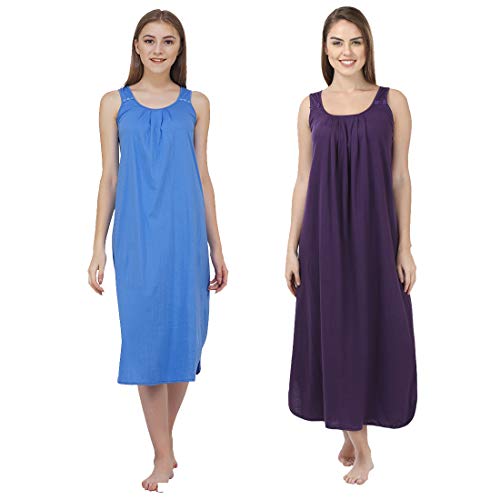 BLAZON Women's Cotton Hosiery Solid Maxi Nighty Slip (Pack of 2) Available Sizes: S, M, L, XL, 2XL, 3XL, 4XL, 5XL - Azure Blue, Blueviolet