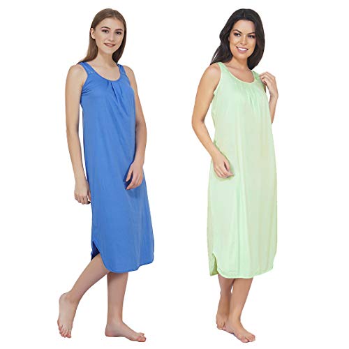 BLAZON Women's Cotton Hosiery Solid Maxi Nighty Slip (Pack of 2) Available Sizes: S, M, L, XL, 2XL, 3XL, 4XL, 5XL - Azure Blue, Skin
