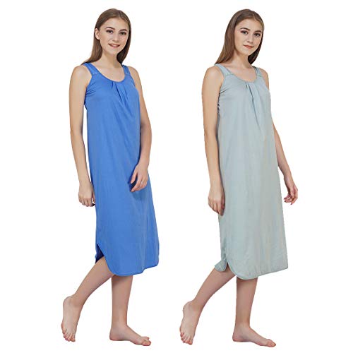 BLAZON Women's Cotton Hosiery Solid Maxi Nighty Slip (Pack of 2) Available Sizes: S, M, L, XL, 2XL, 3XL, 4XL, 5XL - Azure Blue, Wisp Grey