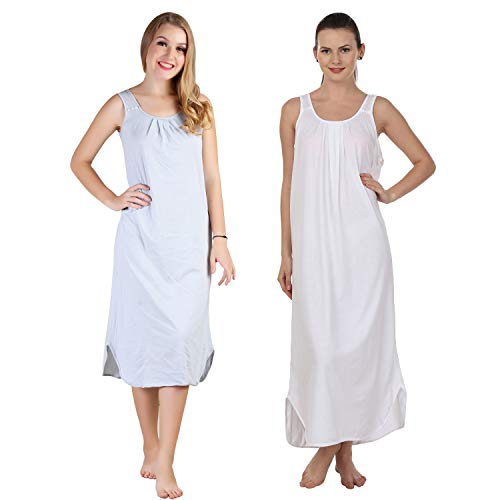 BLAZON Women's Cotton Hosiery Solid Maxi Nighty Slip (Pack of 2) Available Sizes: S, M, L, XL, 2XL, 3XL, 4XL, 5XL - Blueberry Frost, White